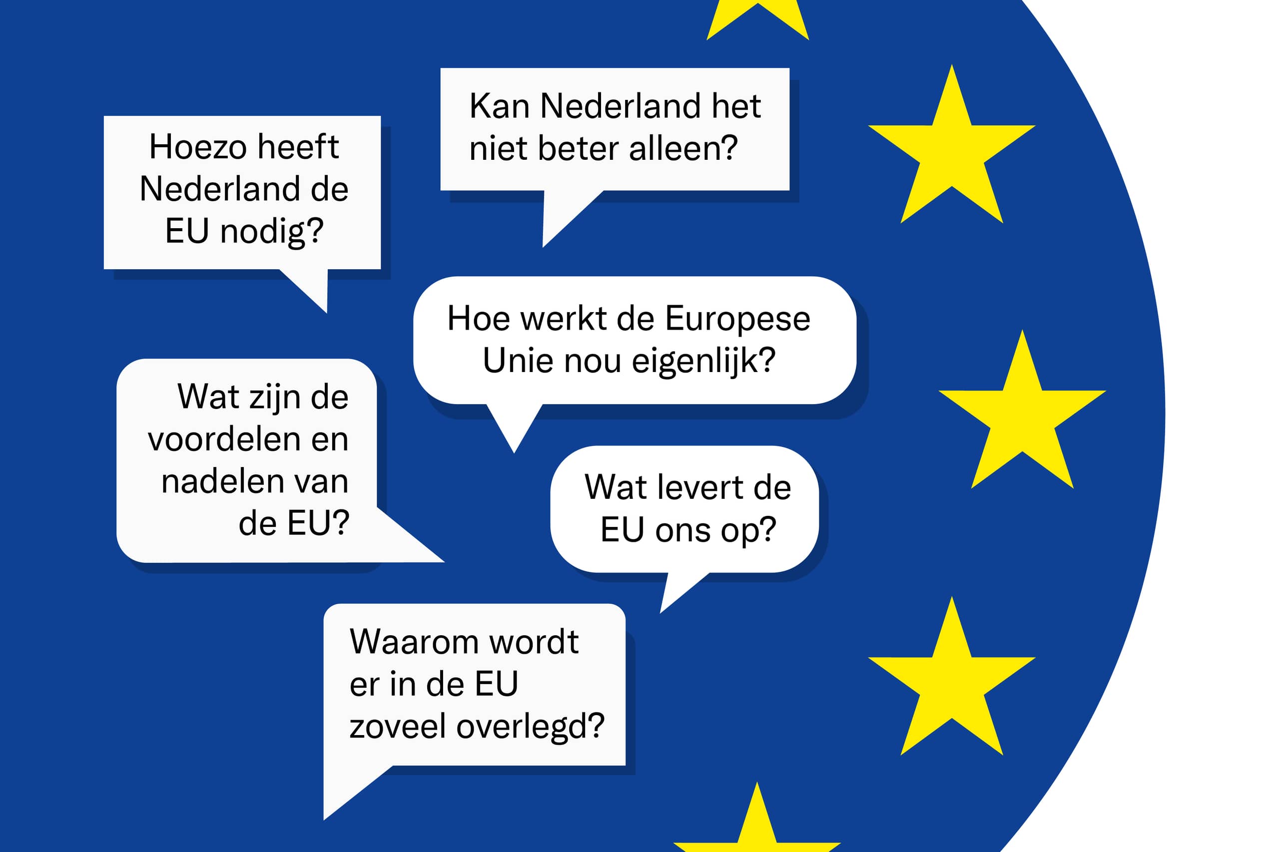 Wat weet jij over de Europese Unie (EU)? En hoe denk je over de inzet van Nederland in de EU? Dat zijn belangrijke vragen. Want de EU heeft invloed op het leven van alle Nederlanders.